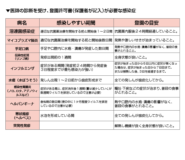 ▼医師の診断を受け、登園許可書(保護者が記入)が必要な感染症 携帯・スマートフォンの方はこちら