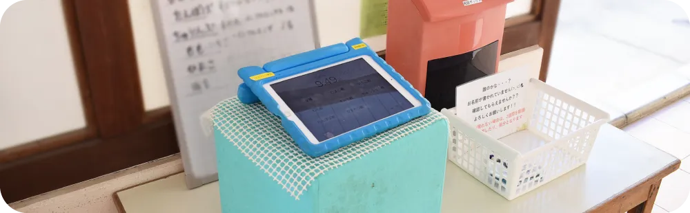 保護者が登降園をタッチ入力するので、記録の手書きや確認が不要に。朝のバタバタが減って、子どもたちの受け入れに集中できます。