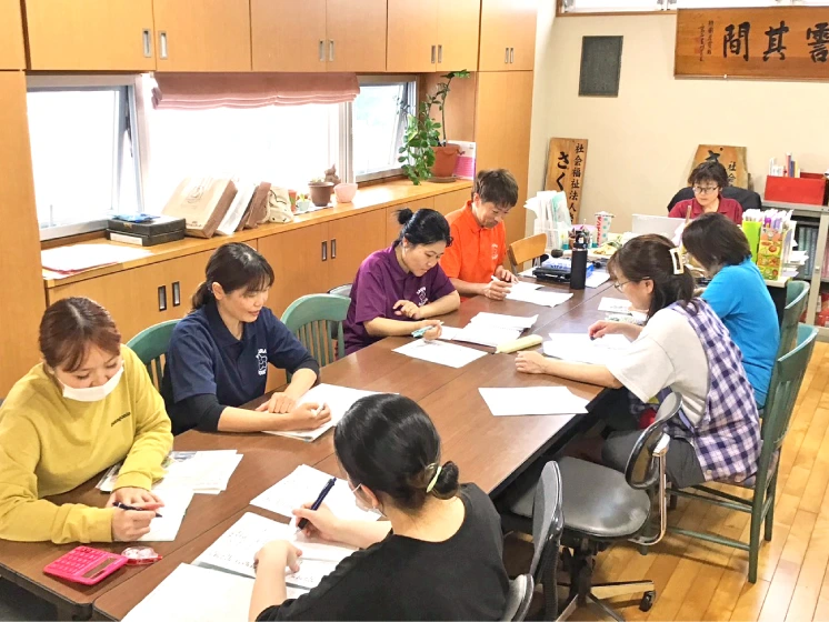 定期的な面談や職員会議で意見を出し合い、働きやすい環境づくりを進めています。
